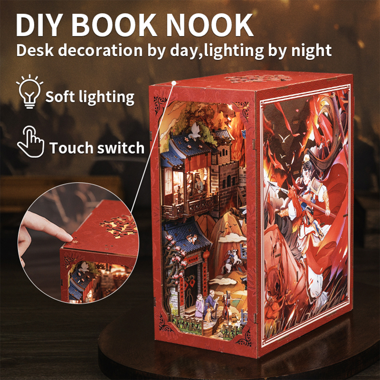 Gefertigt aus hochwertigem, detailbedrucktem Holz, überzeugt das Set durch präzise Passform und eine edle Optik. Dank der bebilderten Schritt-für-Schritt-Anleitung lässt sich dein Book Nook ganz einfach zu Hause zusammenbauen – perfekt für Bastelliebhaber, Kreative und alle, die Freude an feinen Details haben.