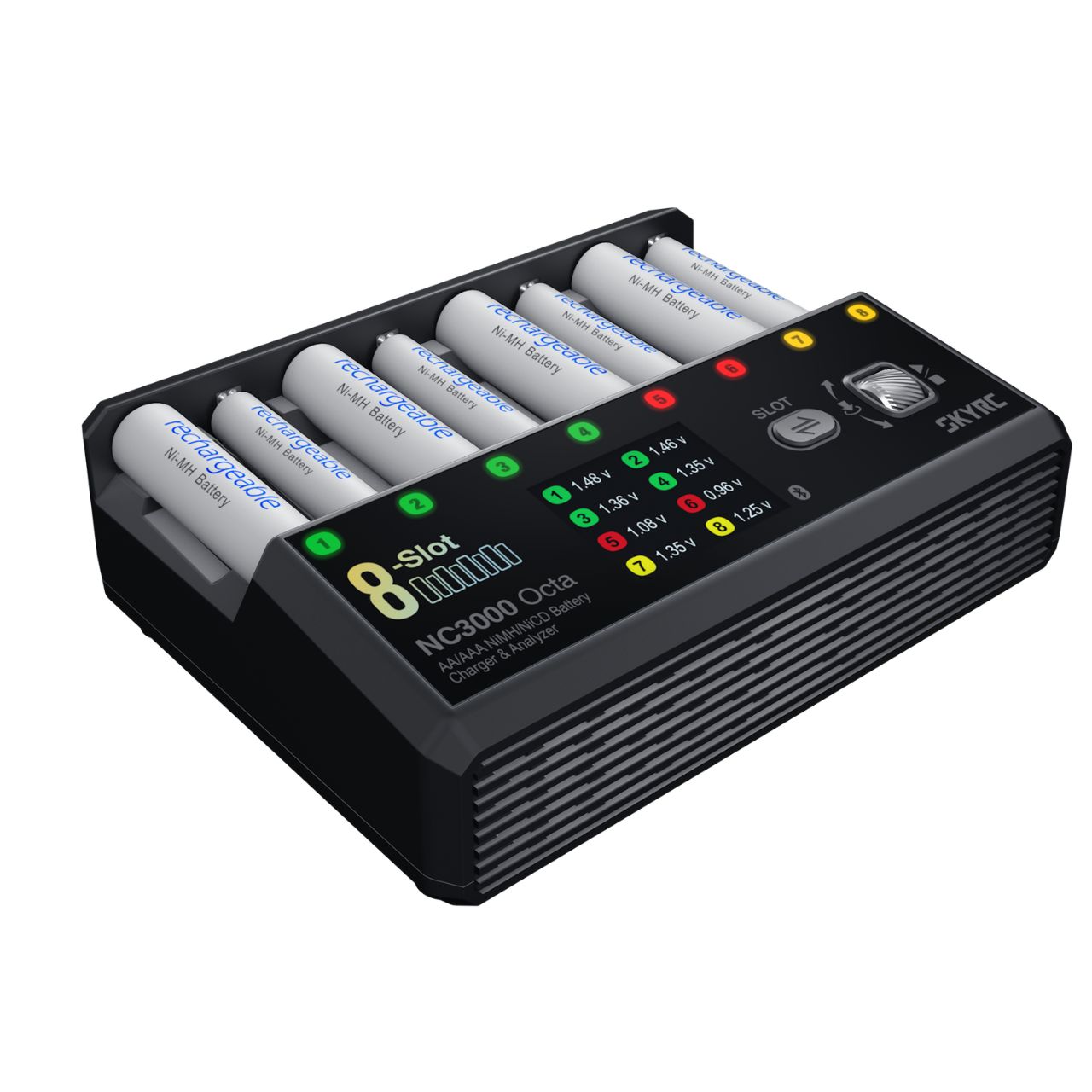 Das SkyRC NC3000 Octa ist ein professionelles 8-Schacht Ladegerät und Analyzer für AA/AAA NiMH- und NiCD-Akkus. Mit acht unabhängigen Ladeschächten, die jeweils individuell gesteuert werden können, bietet es maximale Flexibilität für anspruchsvolle Anwender. Dank USB-C PD-Eingang (65W) und einstellbarem Ladestrom von 0,2A bis 3,0A pro Zelle ist das NC3000 Octa ideal für RC-Fahrer, die ihre Akkus optimal vorbereiten möchten. Die integrierte Bluetooth-Verbindung zur kostenlosen SkyCharger App ermöglicht eine komfortable Überwachung und Analyse aller Ladevorgänge direkt auf dem Smartphone.