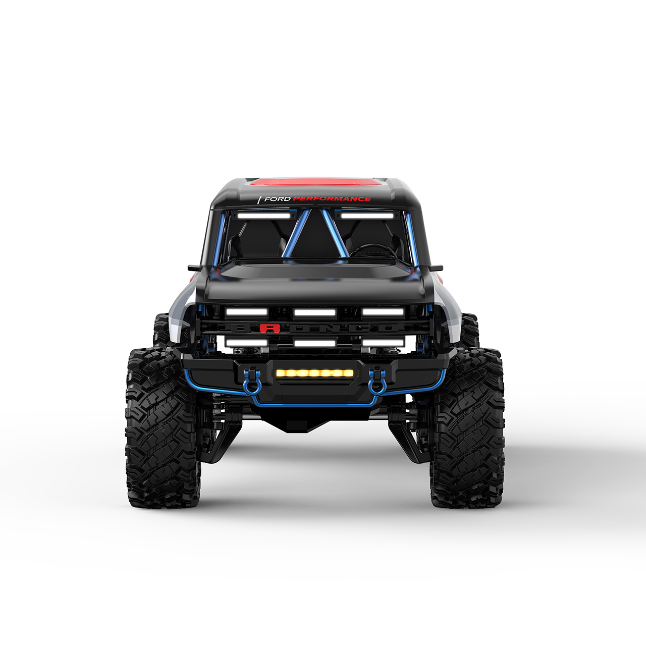 Der MJX Hyper GO H12P (Ford Bronco R Baja1000) ist ein detailgetreuer 1/12 Crawler mit Brushless-Antrieb, robustem Metall Leiterrahmen und lizensierter ABS-Scale-Karosserie. Portalachsen (Gate-Bridge-Getriebe), ein 20 kg Metallgetriebe-Servo sowie ölbefüllte Metall-Stoßdämpfer sorgen für kontrollierte Traktion und fein dosierbares Klettern auf Fels, Schotter oder Waldpfaden. Der 45A-Brushless-Regler (E45M) in Kombination mit dem 3650-Motor liefert sattes Drehmoment für technisches Crawlen.