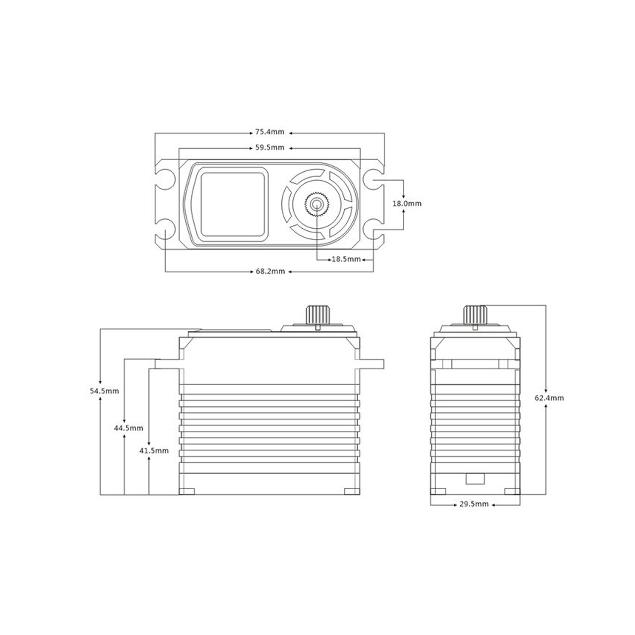 - Hochvolt-Brushless-Servo mit bis zu 125 kg·cm Drehmoment @ 8,4 V