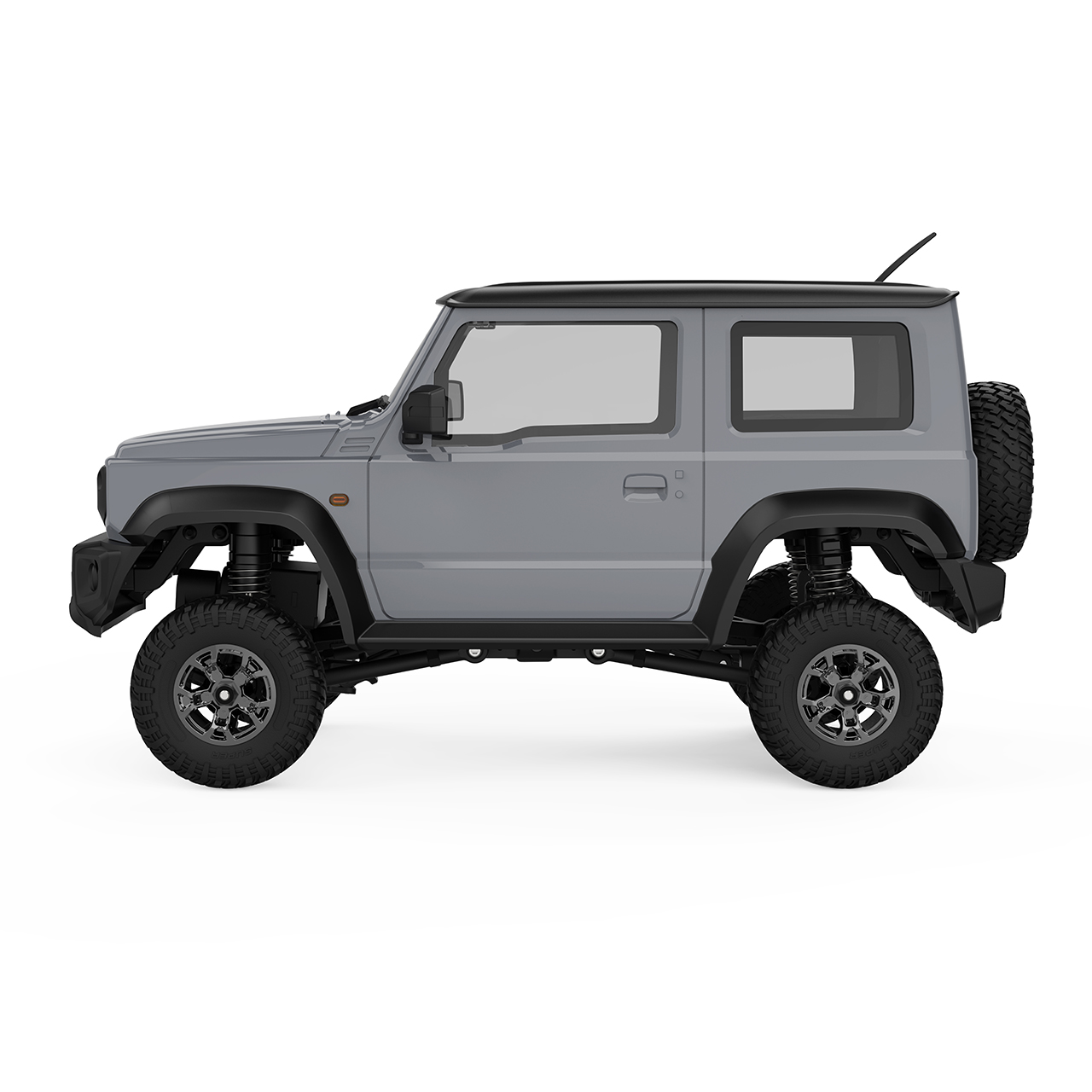 Mit einer kompakten Länge von nur 198mm passt der Jimny problemlos in den Rucksack und überzeugt dennoch mit echtem 4WD-Antrieb, einem drehmomentstarken KF130WH Brushed-Motor und einer präzisen Steuerung. Der 0,5kg Digital-Servo und ein Lenkeinschlag von 30° ermöglichen feinfühlige Manöver selbst auf kleinem Raum.