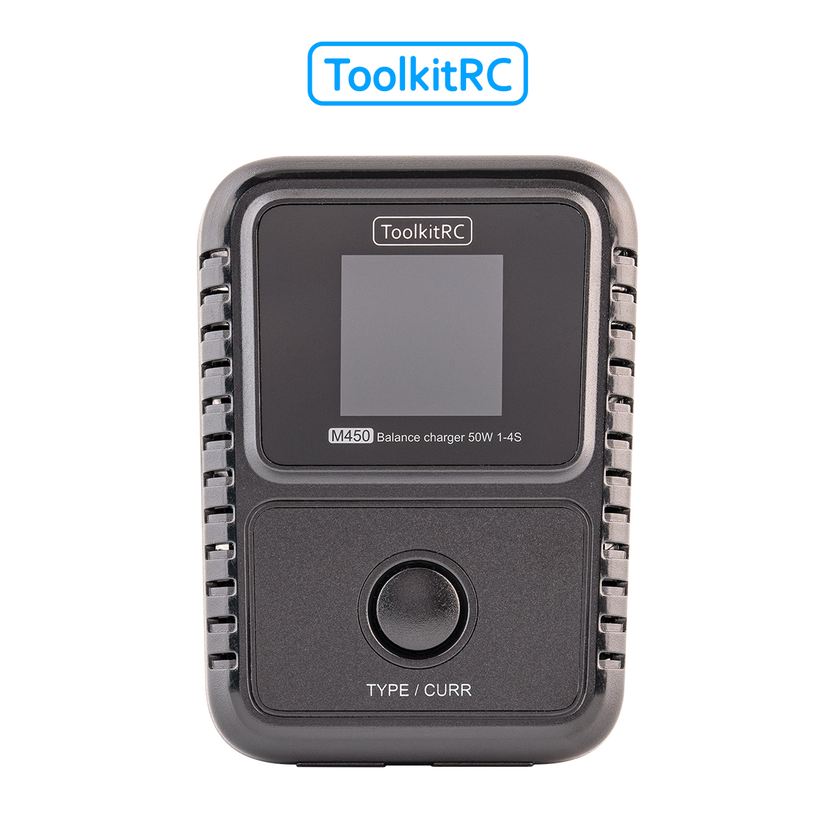 The ToolkitRC M450 is a modern charger for LiPo, LiHV, and LiFe batteries. It combines user-friendly design with extensive safety features, a colorful IPS display, and smart functions like storage charge mode and adjustable cut-off voltage.